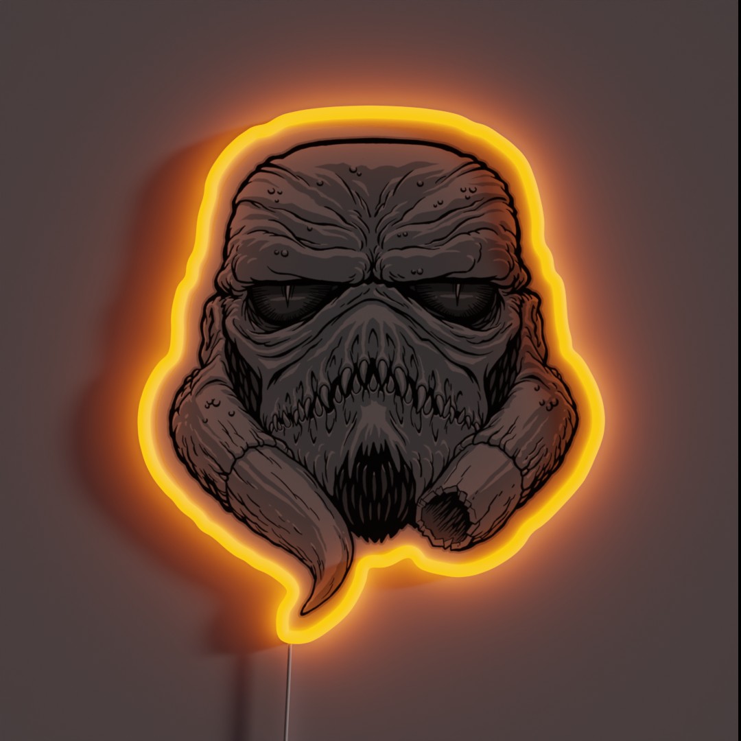 Add a touch of dark elegance to your gaming setup or man cave with our NECROTROOPER RGB neon sign, featuring vibrant LED lights that pulsate with an otherworldly glow.