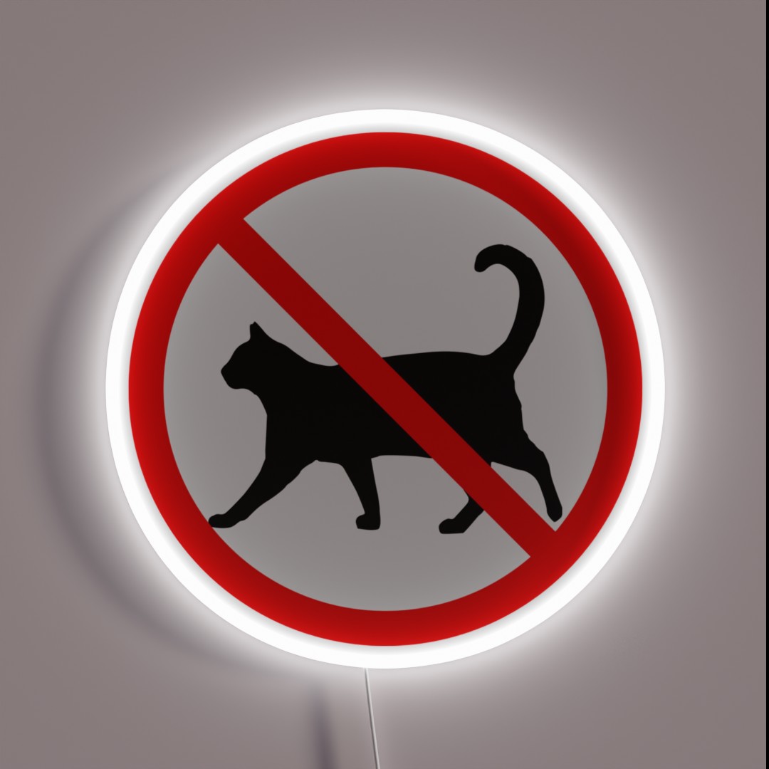Introducing the No Cats Allowed Red Circle with Slash Simple Prohibition Sign RGB Neon Sign, a vibrant and attention-grabbing decoration for any room. This innovative sign features a bold red circle with a slash through it, symbolizing a clear “no cats allowed” policy.