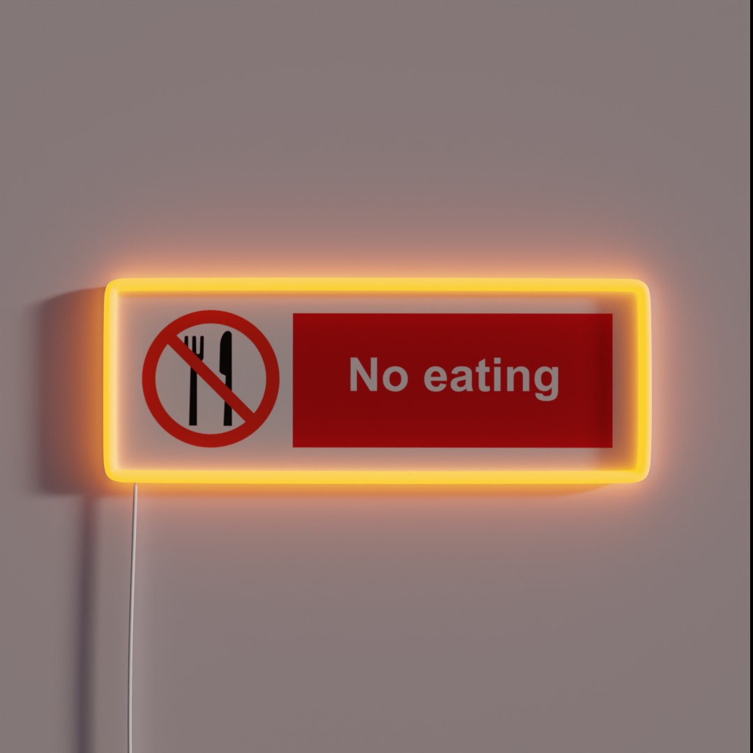 Add a touch of edgy style to your space with this bold ‘No Eating’ RGB neon sign, available in eye-catching colors that illuminate any room.