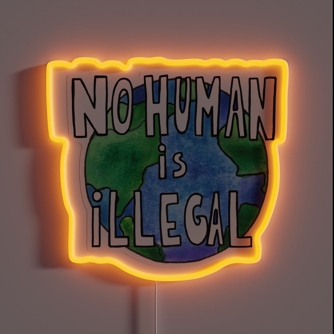 Order your “No Human is Illegal” RGB neon sign today and make a statement that matters.