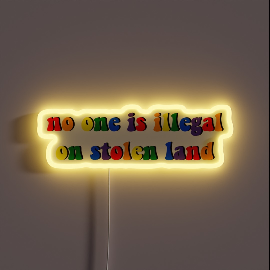 No One Is Illegal On Stolen Land Pride Rainbow RGB Neon Sign