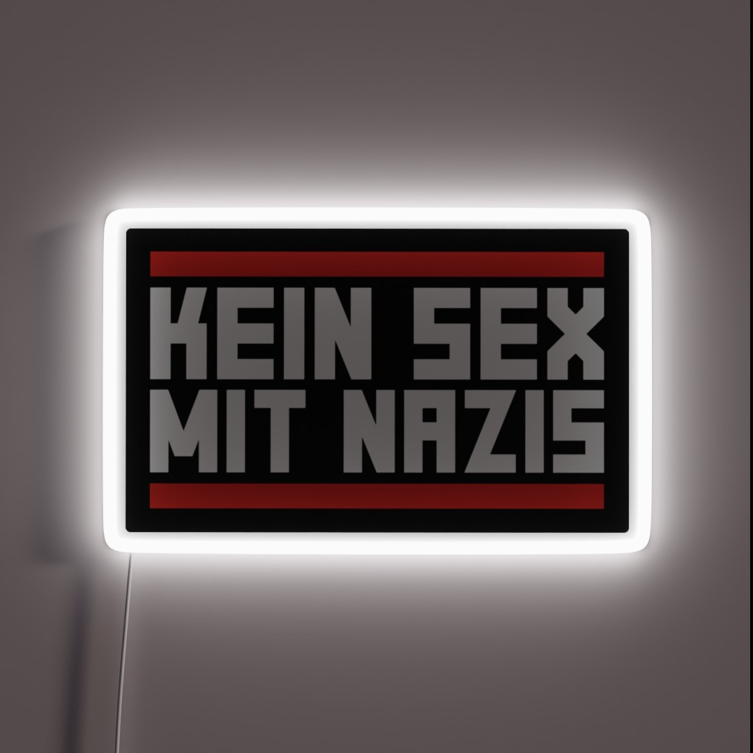 Anti-Nazi decor statement – ‘No Sex with Nazis’ bold, eye-catching RGB neon sign for home or office, made to spark conversation and stand against hate.