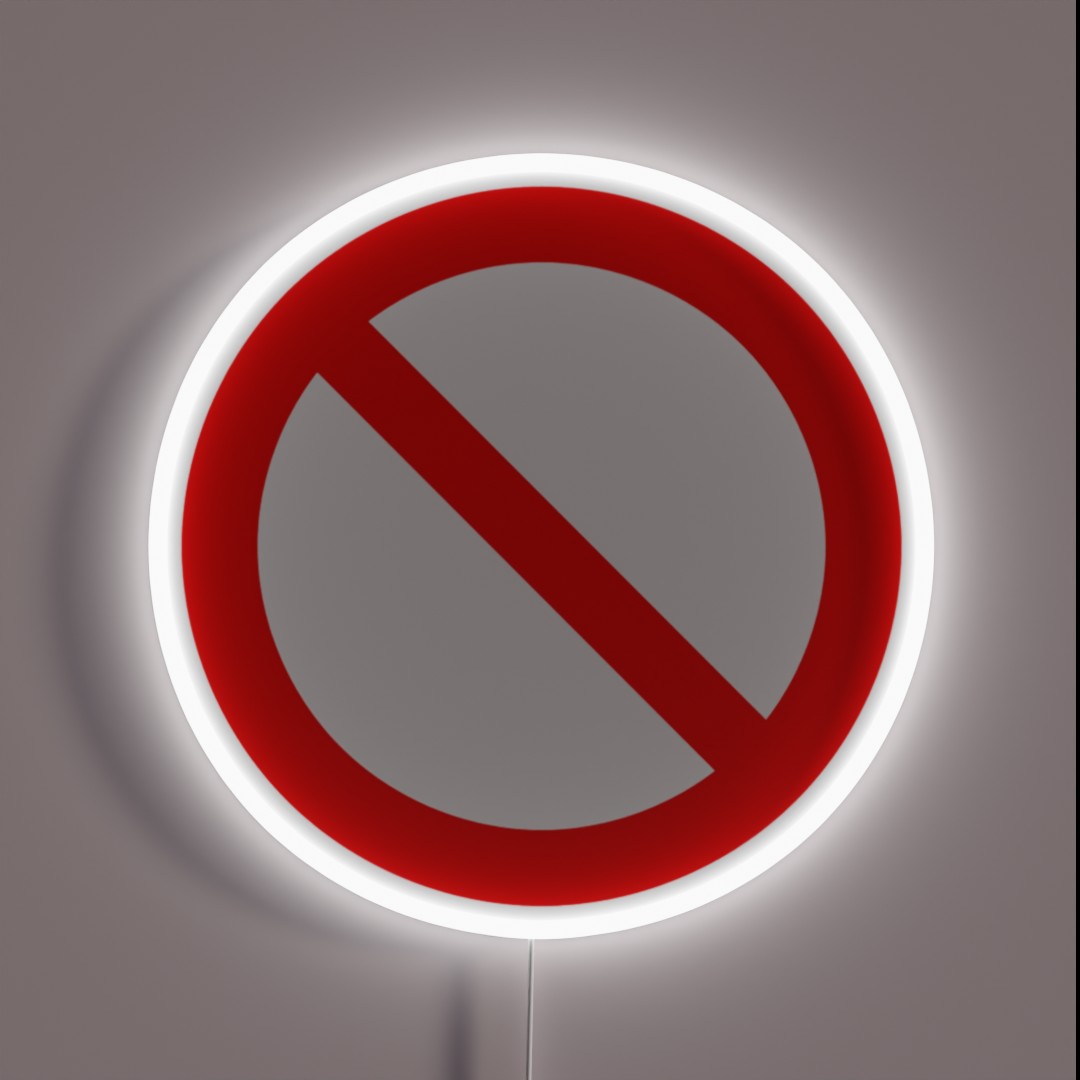 Make a bold statement with our eye-catching NO Symbol Prohibition Sign in vibrant red RGB neon light. This striking sign is designed to grab attention and convey a clear message.
