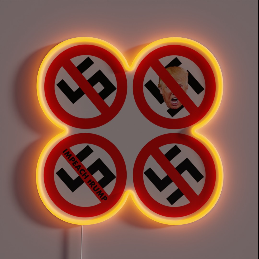 Illuminated “No Trump No Nazi” 4-pack neon sign featuring bold RGB colors, perfect for protesting against hate and promoting unity.