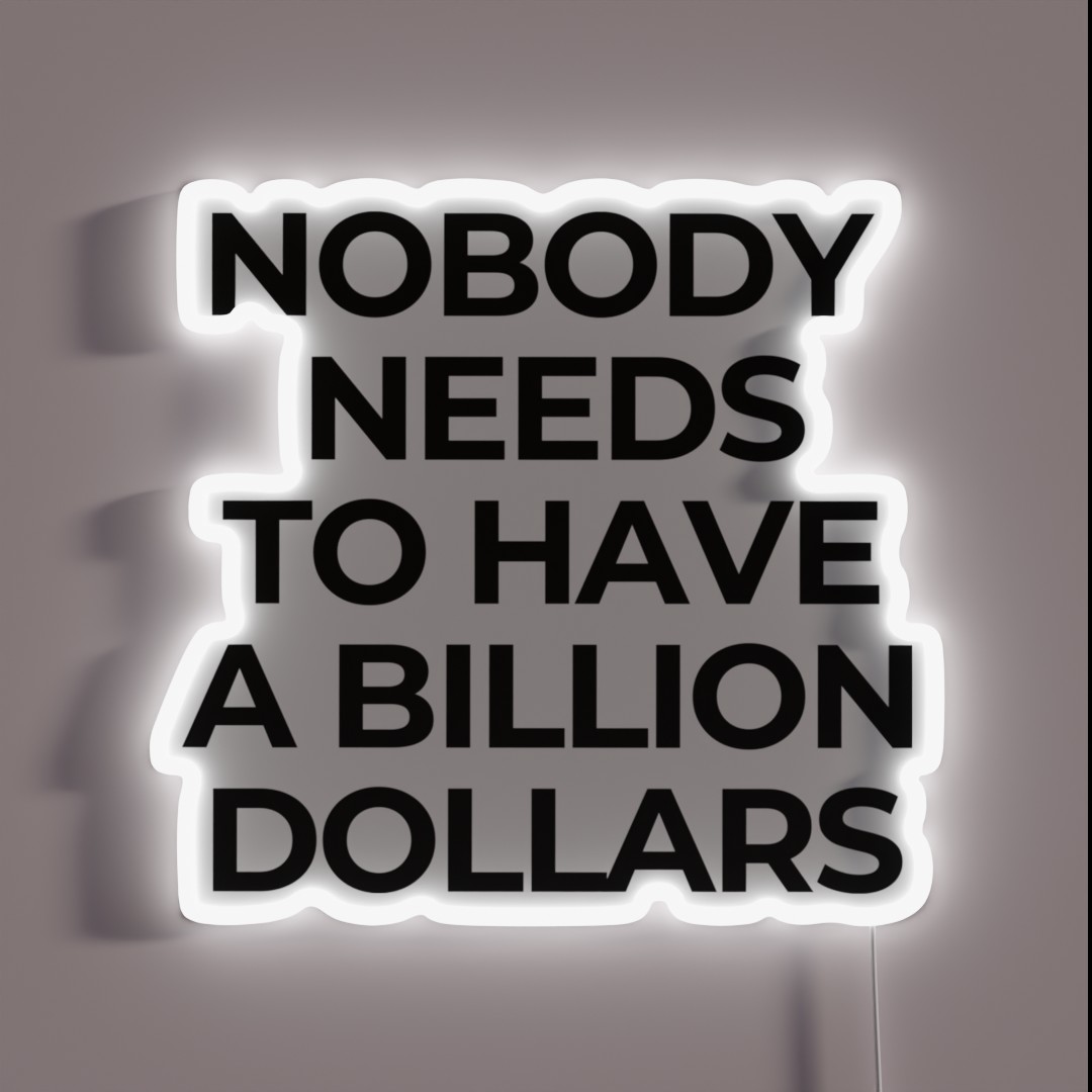 Make a statement against billionaire culture with our “Nobody Needs A Billion Dollars” RGB neon sign, a commentary on the excesses of capitalism.