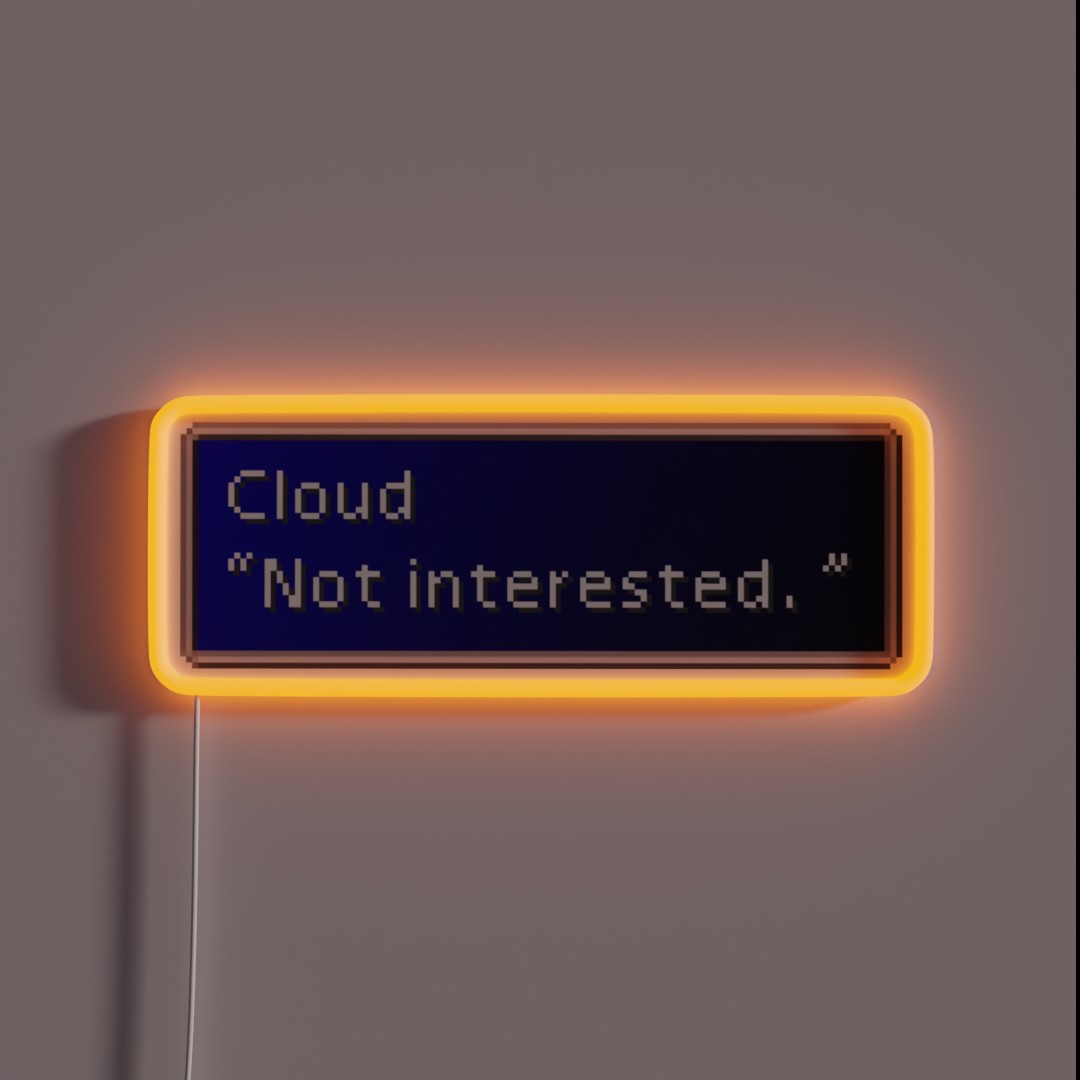 Bring a touch of Final Fantasy flair to your gaming space with this unique Not Interested Cloud Strife Dialogue Box RGB neon sign, featuring a humorous quote from one of gaming’s most iconic characters.