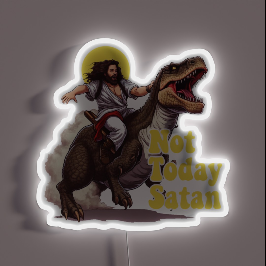 Not Today Satan Jesus Riding Dinosaur T Rex RGB Neon Sign