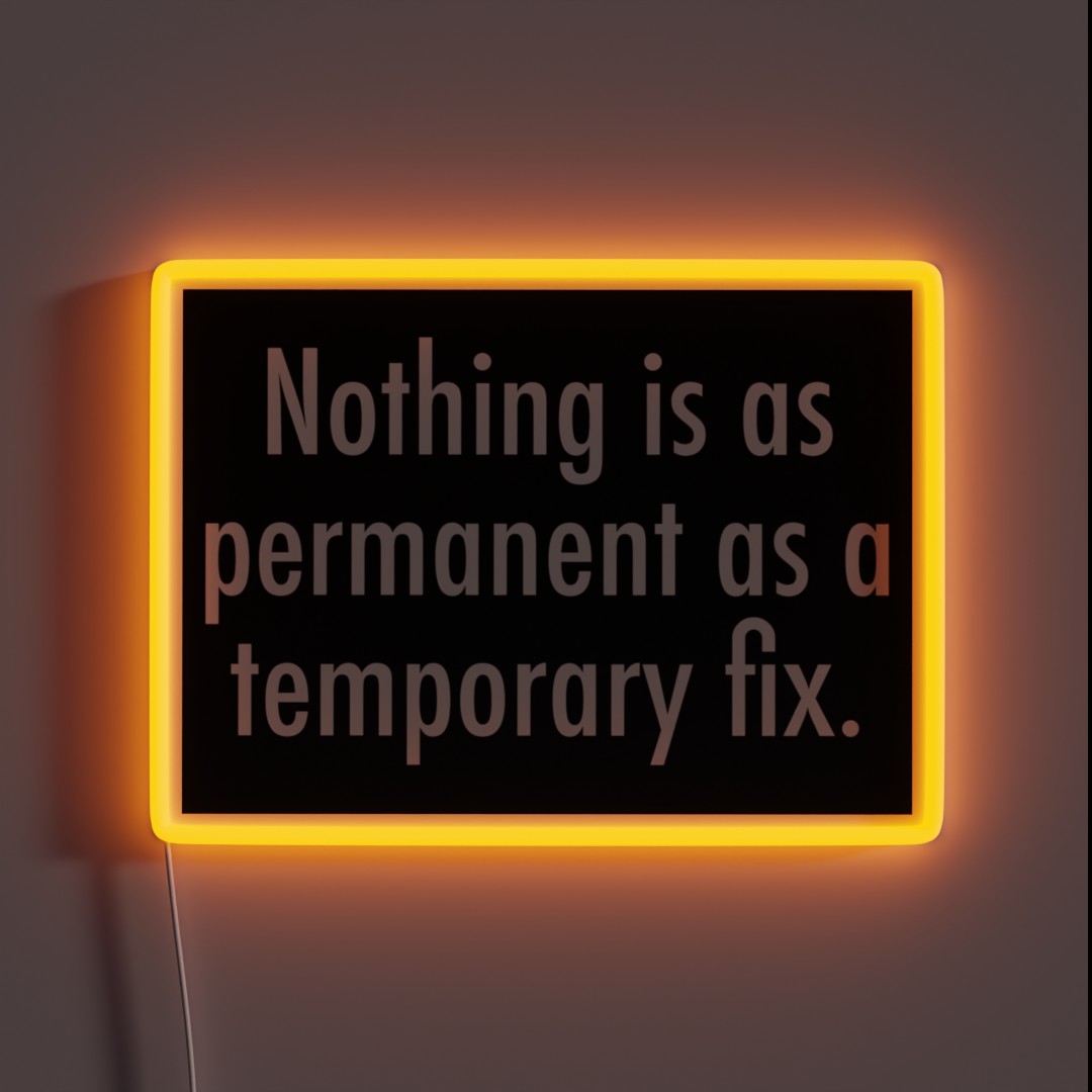 Ironic and thought-provoking, this ‘Nothing is as Permanent as a Temporary Fix’ RGB neon sign challenges conventional thinking with a witty, eye-catching design.