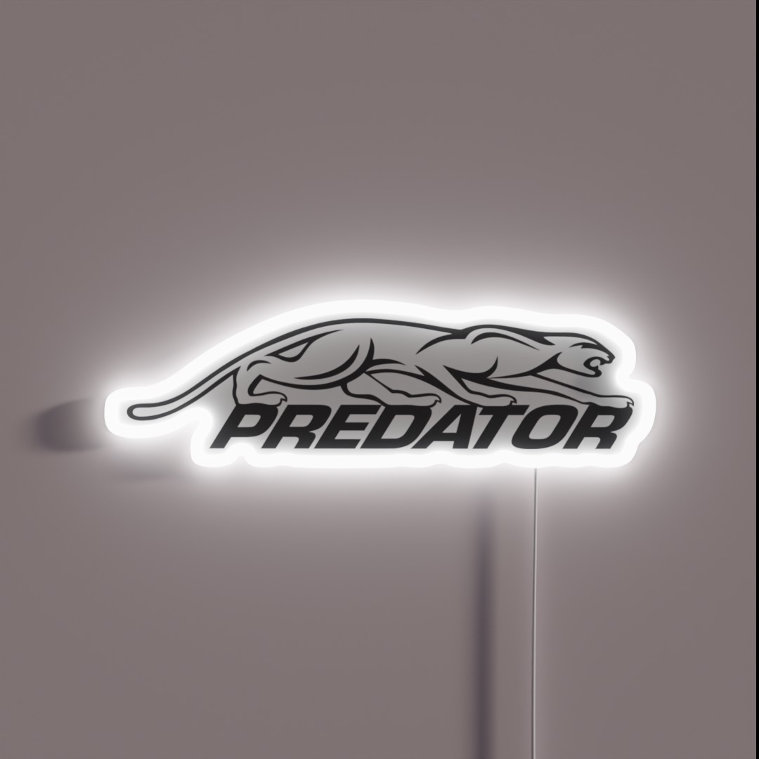 Original Predator Cue logo lighted wall decor for pool enthusiasts, featuring vibrant black and white neon accents in RGB display.