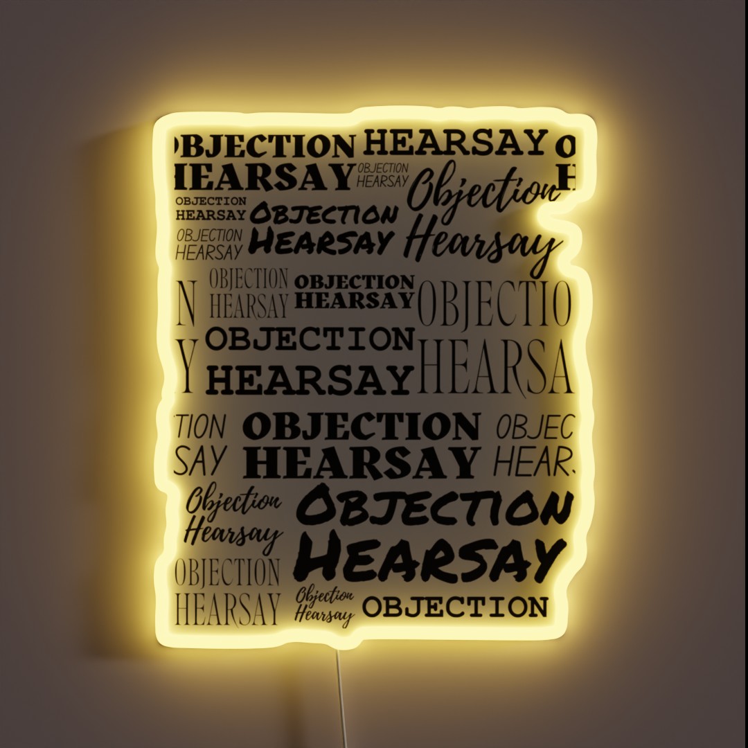 Make your home or office space stand out with this unique Objection Hearsay Pattern RGB neon sign. A statement piece that combines edgy design with vibrant lighting, perfect for fans of law-inspired decor.