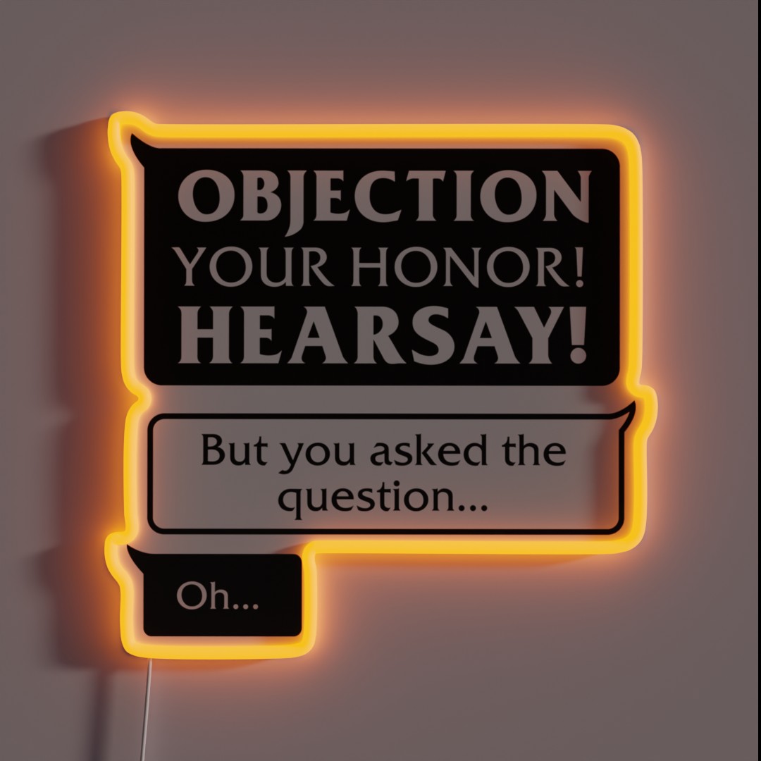 Light up your space with the Objection Your Honor Hearsay RGB Neon Sign, a vibrant and eye-catching addition to any room or office featuring a unique, statement-making design.