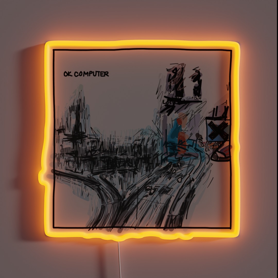 Experience the nostalgia of the iconic OK Computer album cover with our touchable and safe OK Computer RGB Neon Sign. This stunning piece of art is designed for fans of Radiohead’s critically acclaimed album.