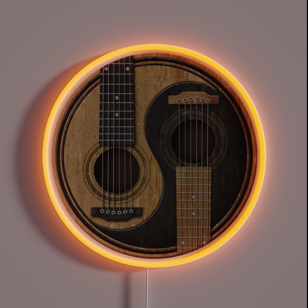 **Old and Worn Acoustic Guitars Yin Yang RGB Neon Sign**