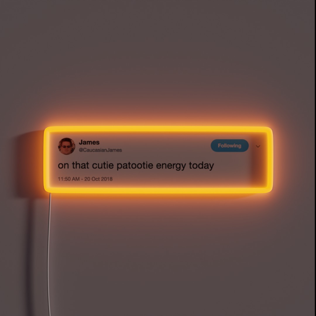 Add a pop of personality to your space with this vibrant ‘On That Cutie Patootie Energy Today’ RGB neon sign, perfect for gaming rooms, home bars, or quirky decor.