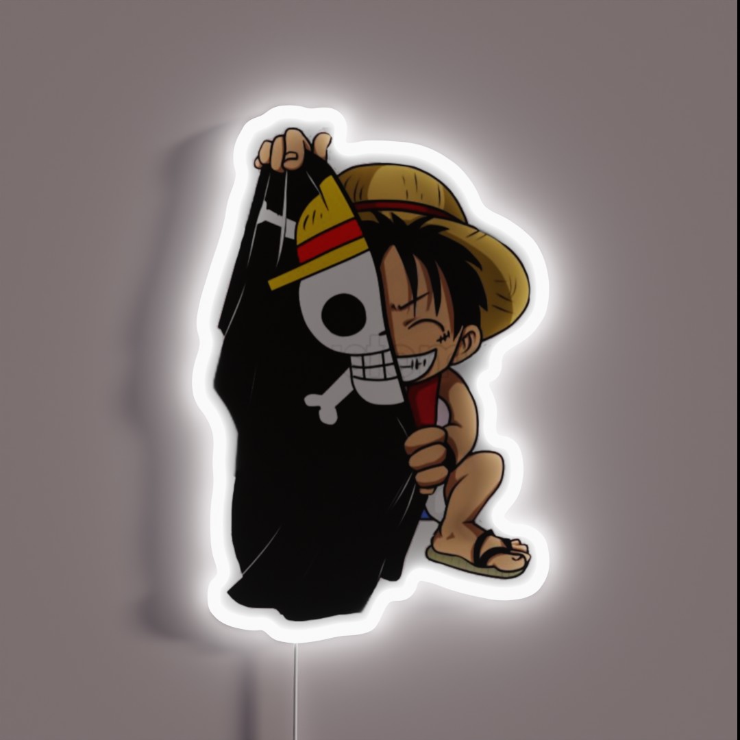 Add a pop of color and a touch of pirate charm to any room with our RGB neon sign featuring the iconic One Piece character, Monkey D. Luffy, flying his signature flag in vibrant display.