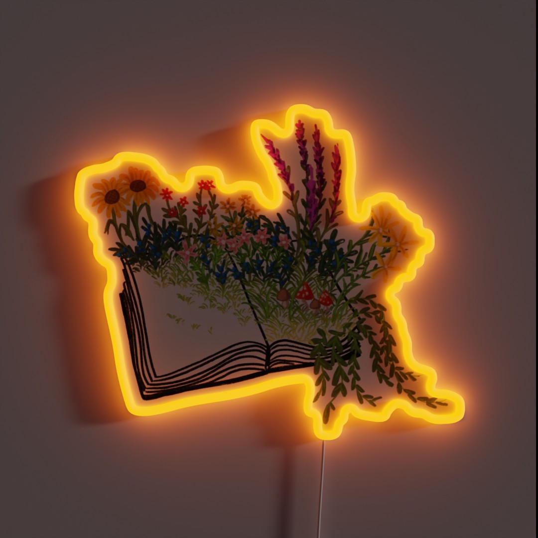 **Illuminated Open Book with Flora Growth Neon Sign**