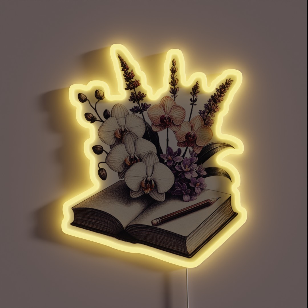 **Open Book with Flowers Nature’s Wisdom in Words RGB Neon Sign**