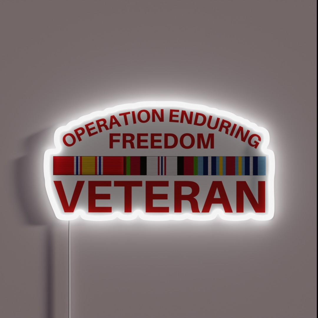Showcase your pride and patriotism with our unique Operation Enduring Freedom Veteran RGB Neon Sign, honoring the bravery and sacrifice of those who served in Afghanistan.