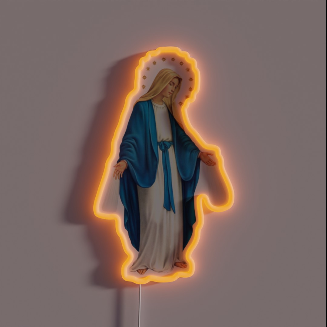 **Durable LED Technology**: Unlike traditional glass neon signs, our Our Lady Mary Sign uses long-lasting LED technology that’s both durable and non-fragile. You can be confident it will remain a beautiful feature of your space for years to come.