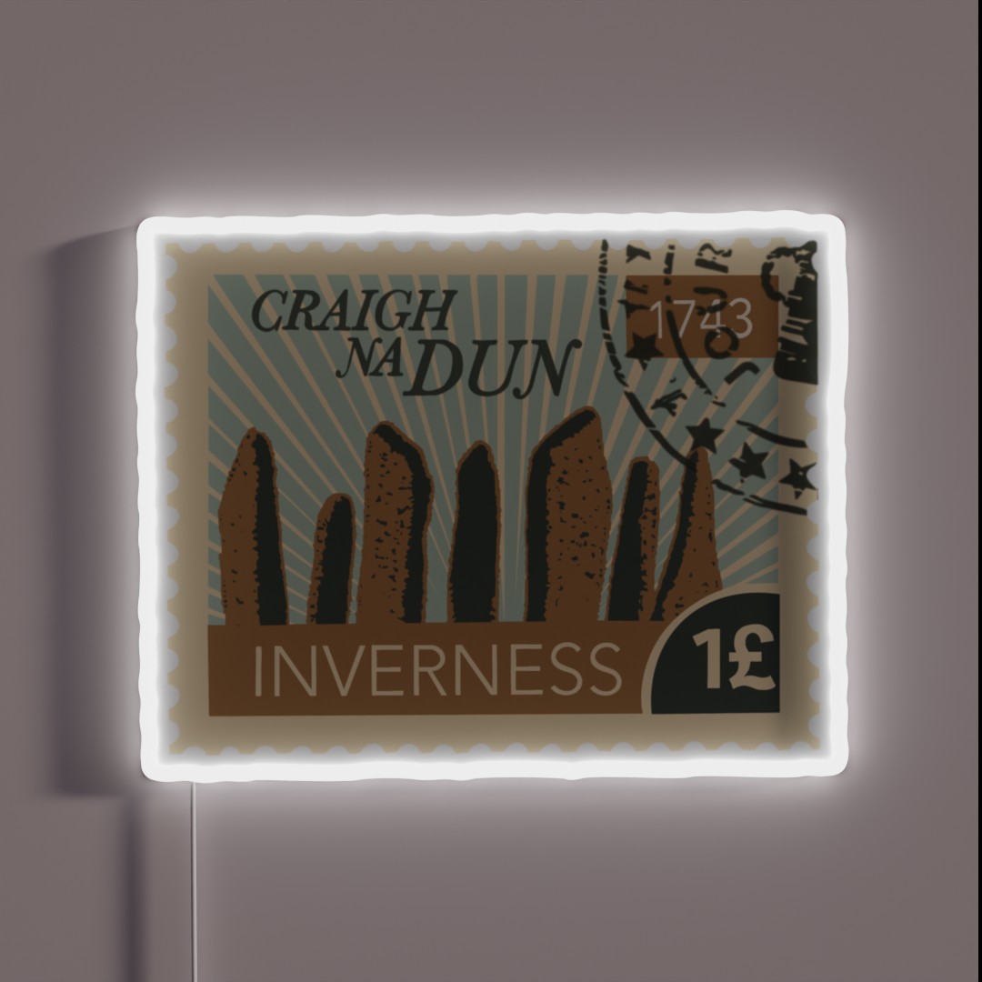 Dream big with the Outlander Postage Stamp inspired LED neon sign, radiating vibrant RGB colors to illuminate your fandom and bring a touch of 18th-century charm to any room.