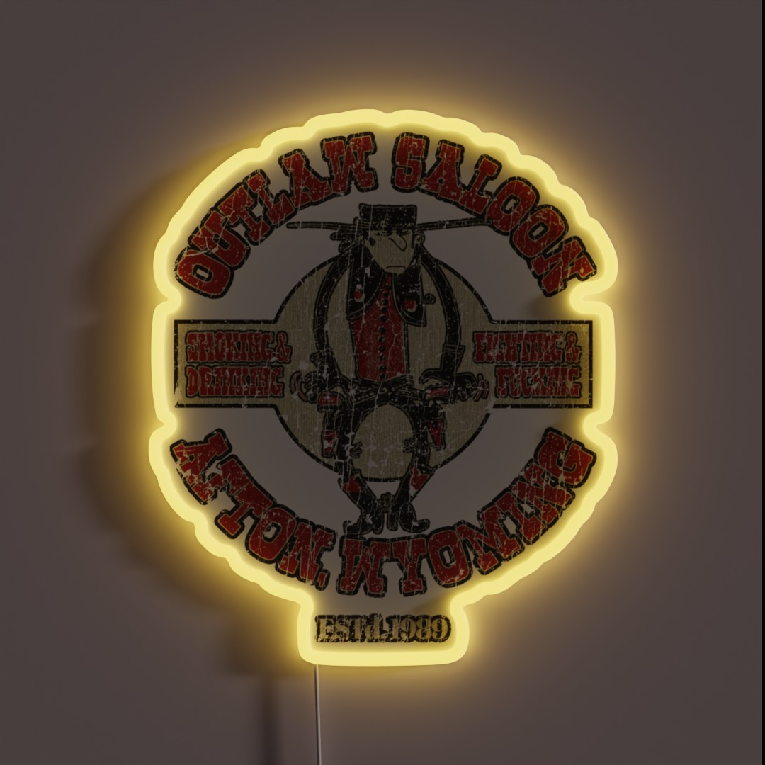 Add a touch of rebellious charm to your gaming setup or home bar with our Outlaw Saloon RGB neon sign, featuring vibrant, customizable colors and a nostalgic Wild West vibe.