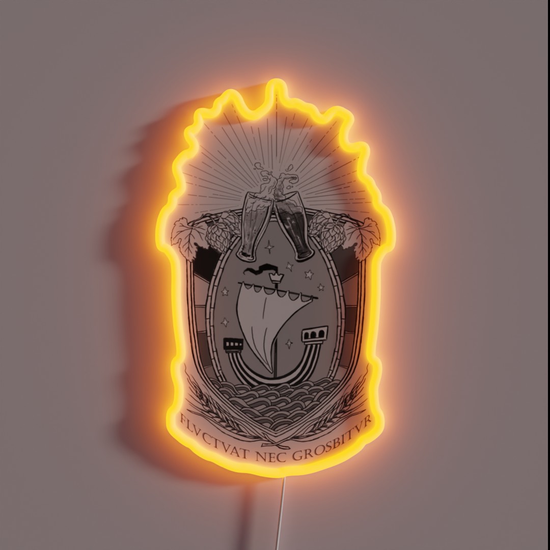Elegant neon sign featuring the Latin phrase ‘Paris Fluctuat Nec Mergitur’ in RGB color, symbolizing Paris’ resilience and historic charm.