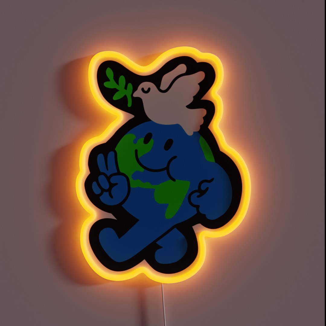 Bring harmony and serenity to your space with our Peace on Earth RGB neon sign, a vibrant display of hope and unity that shines bright in any room.