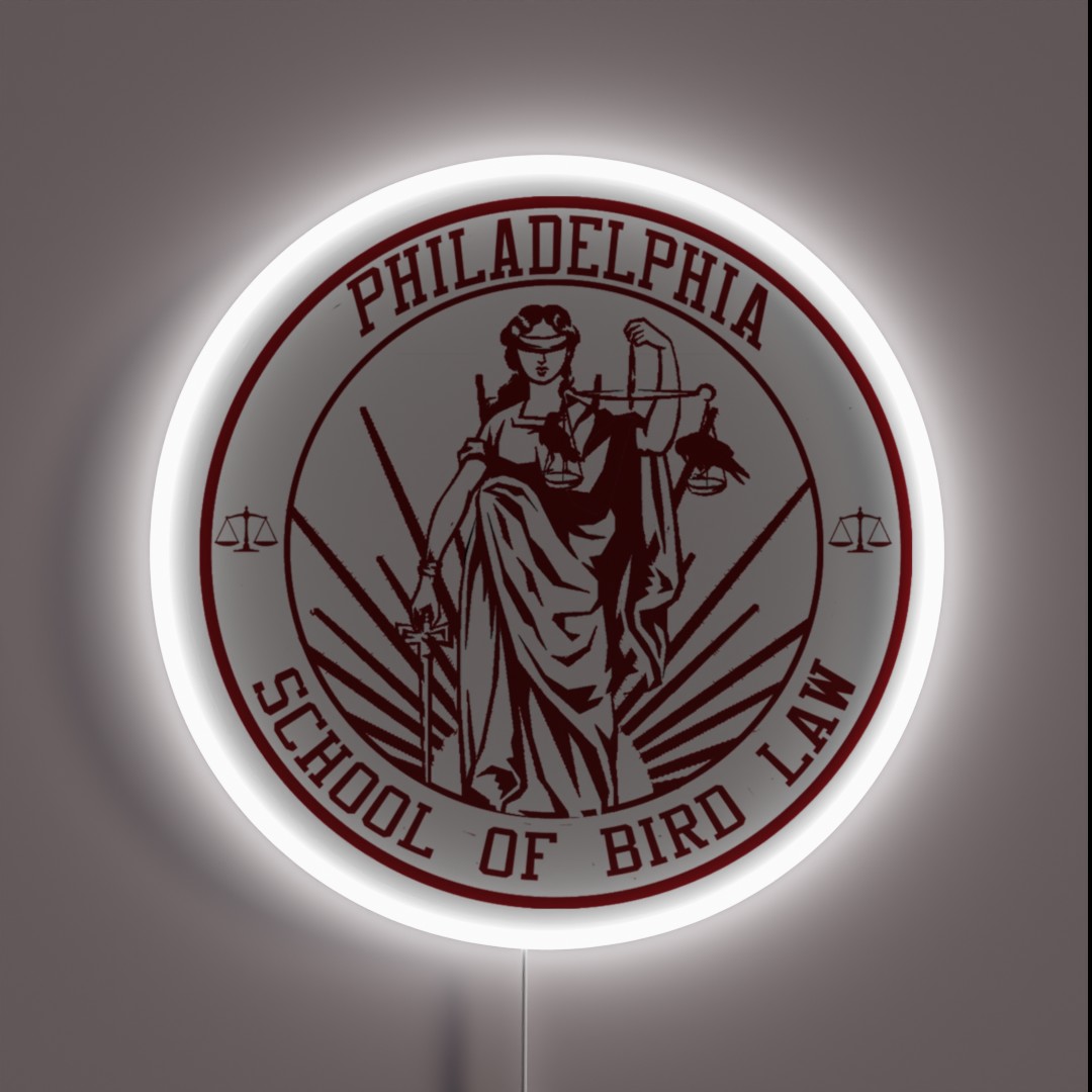 Add a touch of whimsy and justice to your space with this vibrant Philadelphia School of Bird Law RGB neon sign, perfect for bird enthusiasts and law aficionados alike.