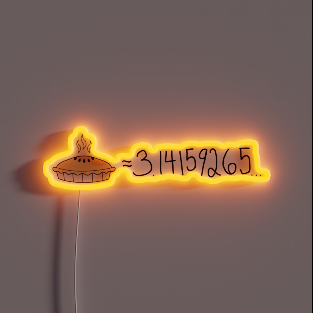 A vibrant addition to any gaming setup or home decor – this pi(e) RGB neon sign proudly displays its playful twist on the classic mathematical constant in eye-catching, customizable colors.