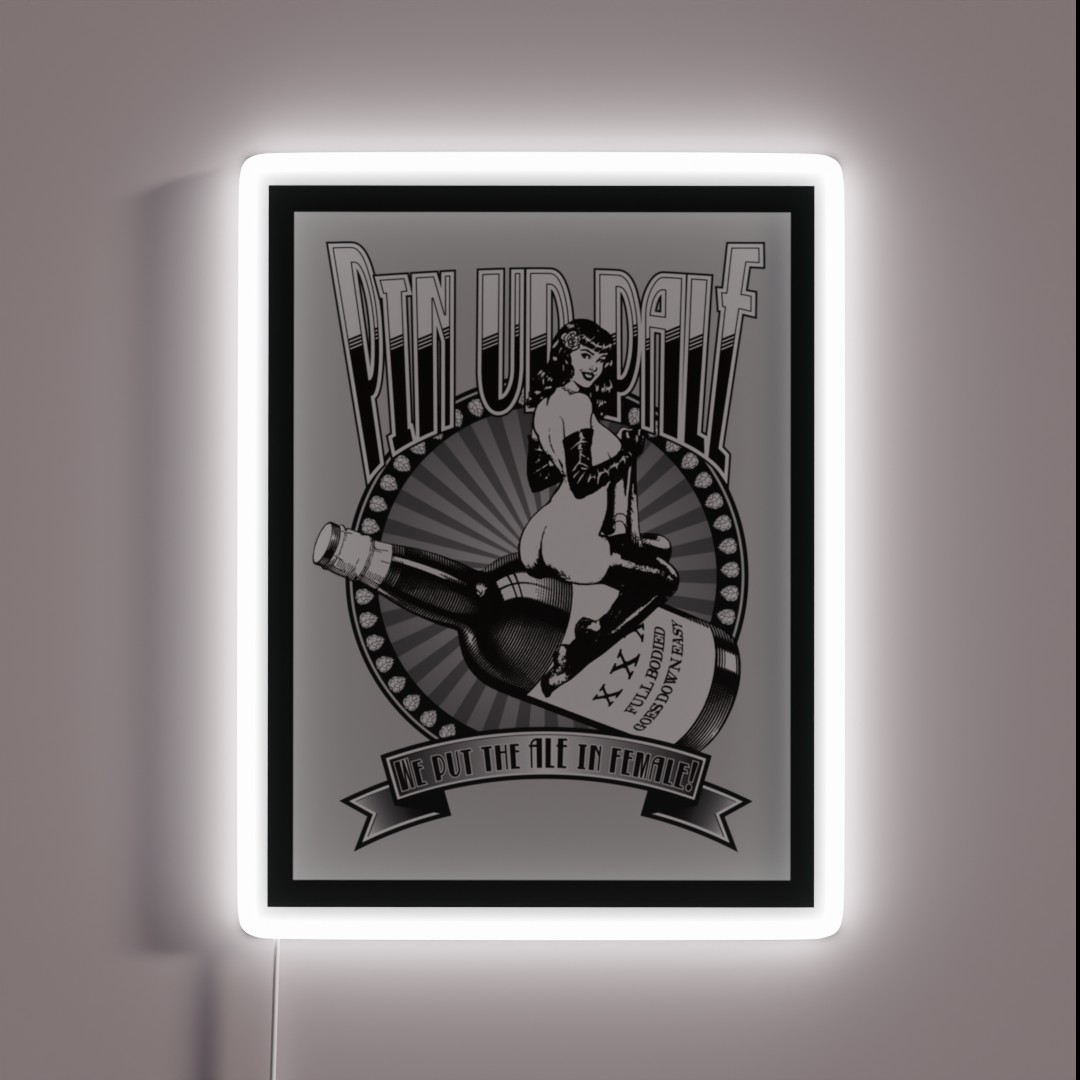 Add a touch of fun and nostalgia to your home or bar with this vibrant Pin Up Girl Pale Ale RGB neon sign, perfect for craft beer enthusiasts and those who love classic pin-up art.