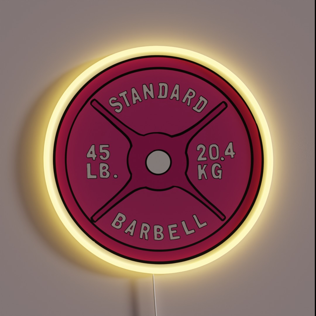 Add a pop of color to your space with this vibrant pink 45lb plate RGB neon sign, featuring vibrant lighting and modern design.