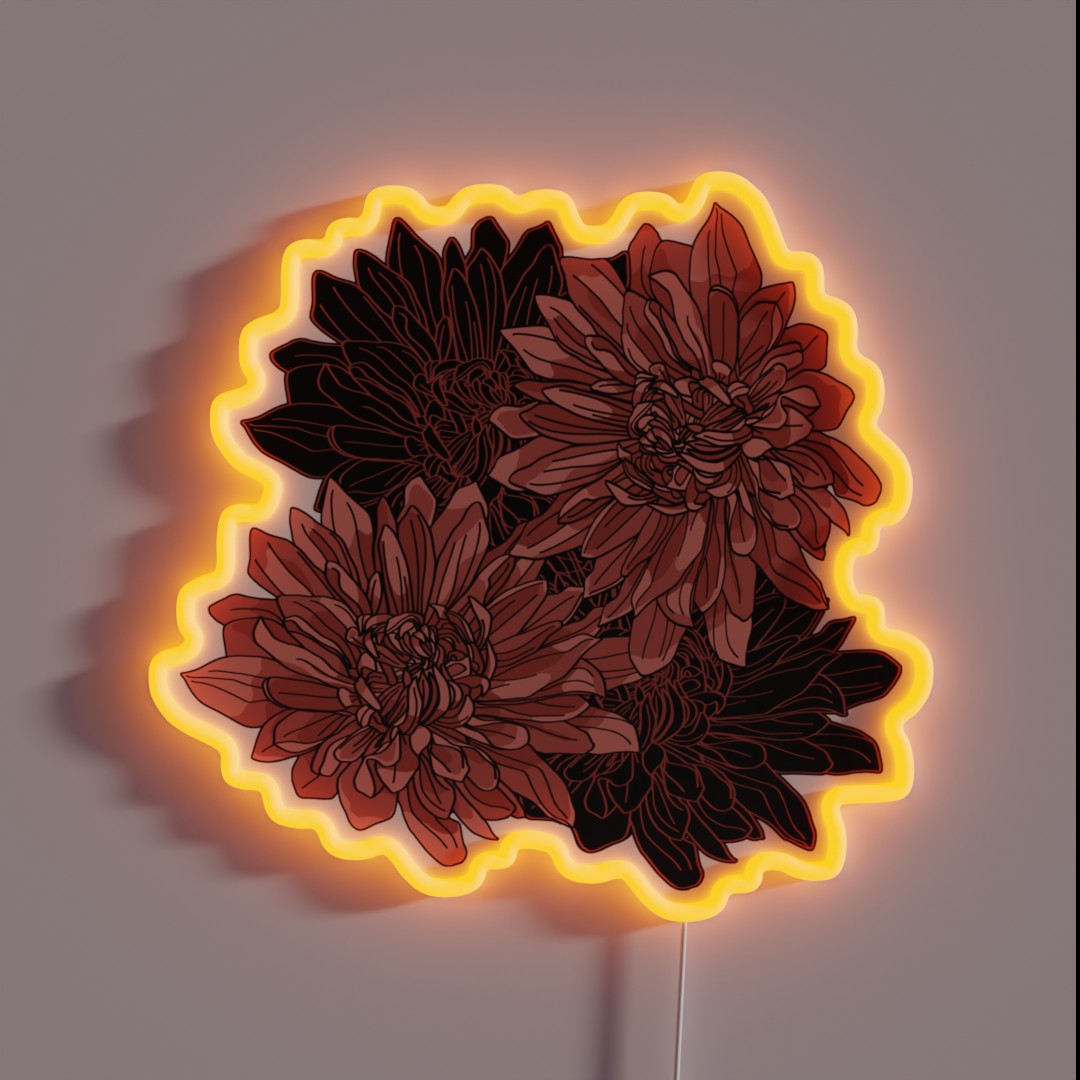 **RGB Neon Sign: Pink Chrysanthemum Floral Illustration**