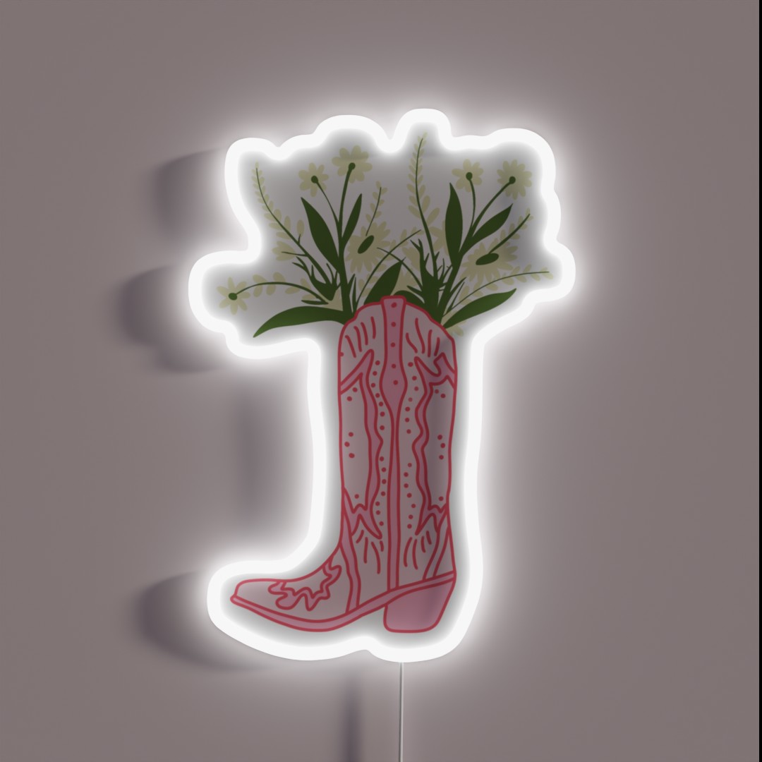 Pink Cowboy Boot With Flowers RGB Neon Sign