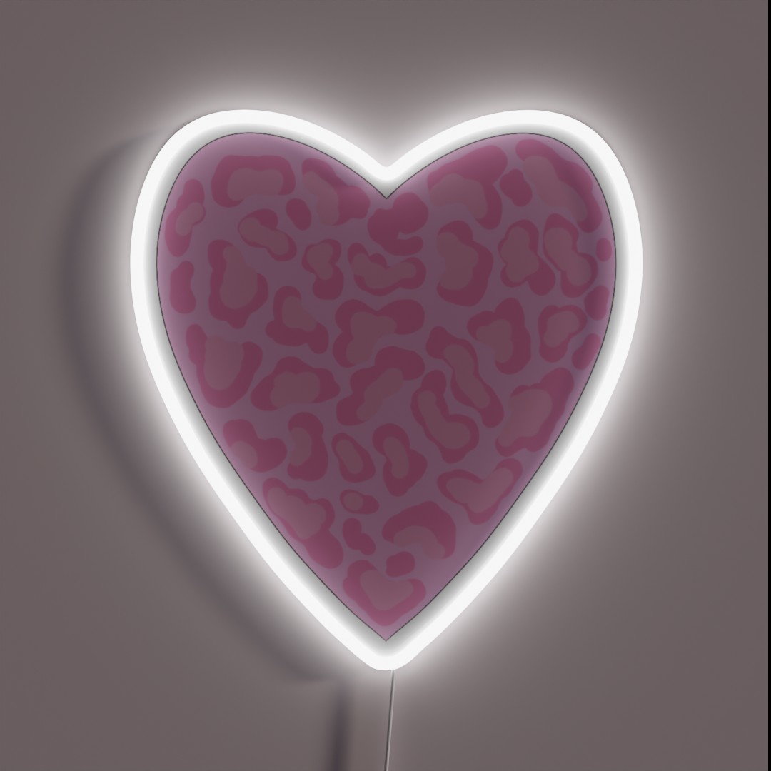 **Pink Y2k Leopard Print Love Heart RGB Neon Sign**