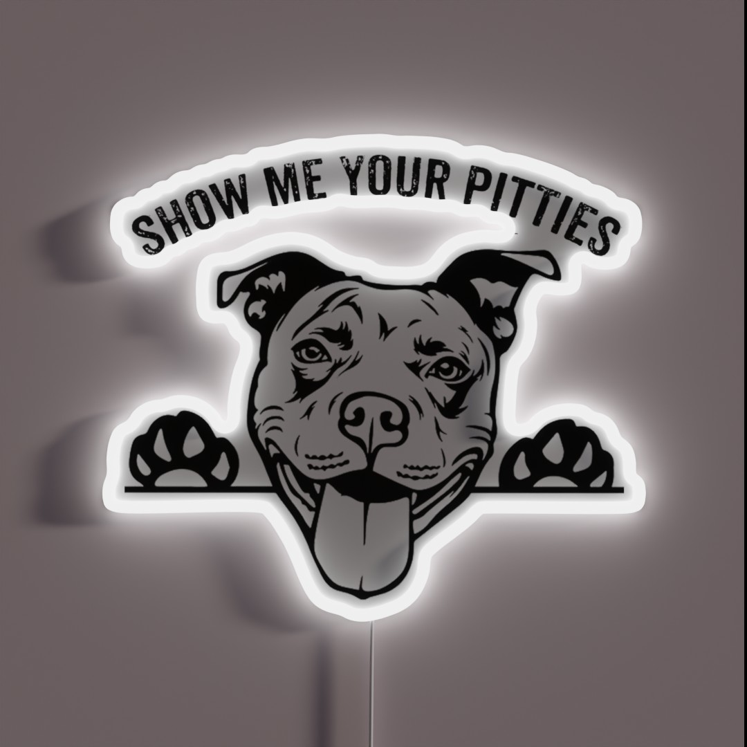 Pitbull Funny SHOW ME YOUR PITTIES RGB Neon Sign