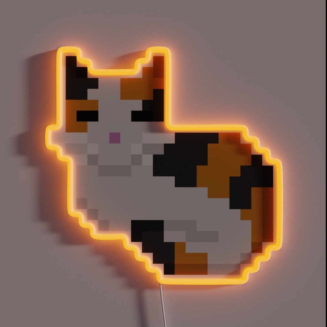 Add a touch of colorful whimsy to your home decor with our Pixel Cat Calico RGB neon sign, featuring vibrant, customizable color-changing pixels that bring this adorable calico cat design to life.