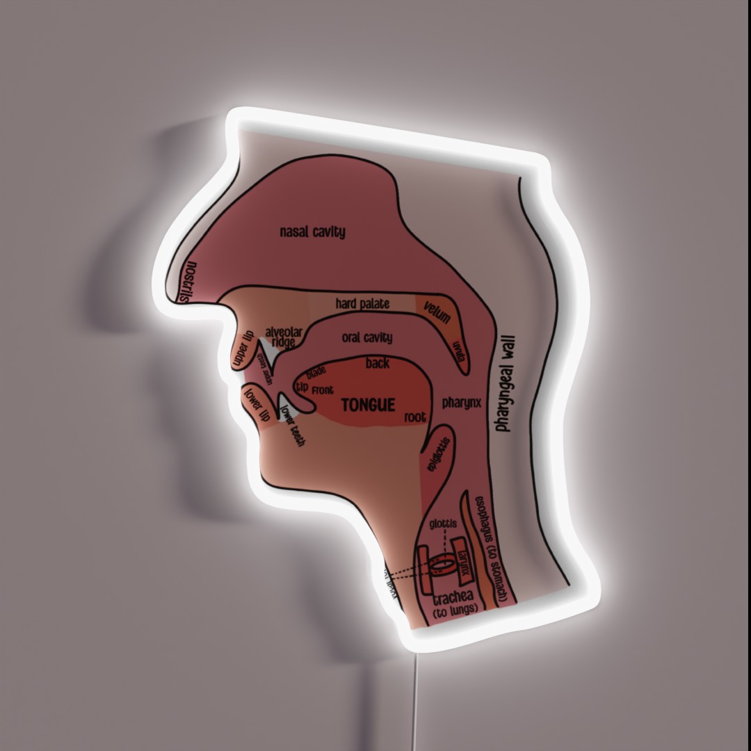 Perfect for linguistics enthusiasts, SLP professionals, or anyone looking to add a touch of personality to their workspace or home. This Place Of Articulation Linguistics SLP RGB Neon Sign is an eye-catching conversation starter that showcases your passion and dedication to the field.
