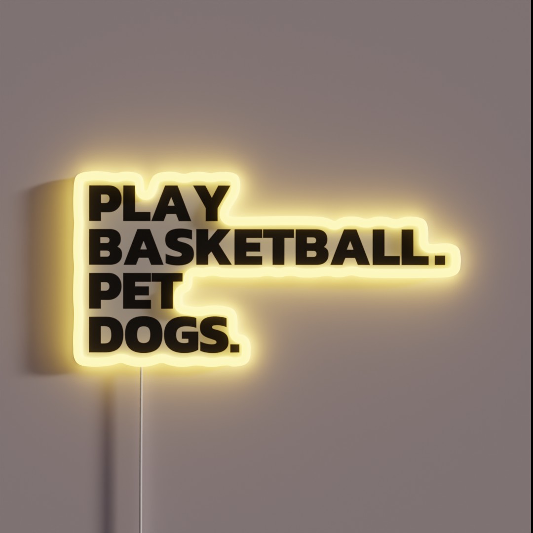 Add a pop of personality to your home or gym with this unique Neon Sign featuring adorable basketball pet dogs in vibrant RGB colors. Perfect for sports enthusiasts and dog lovers alike.