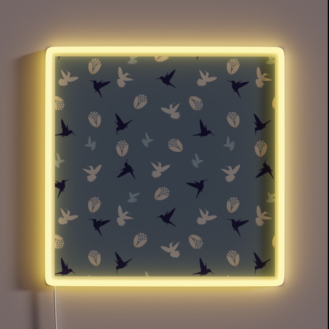 Add a touch of whimsy to your home decor with this vibrant Playful Hummingbirds Blue RGB Neon Sign, featuring colorful hummingbirds in mid-flight against a radiant blue backdrop.