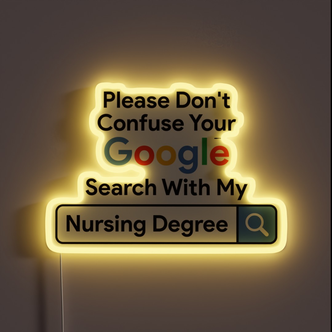 Add a dash of humor to your medical office or student space with this ‘Please Don’t Confuse My Google Search With My Nursing Degree’ RGB neon sign, perfect for nurses and nursing students who know the difference between research and reality.