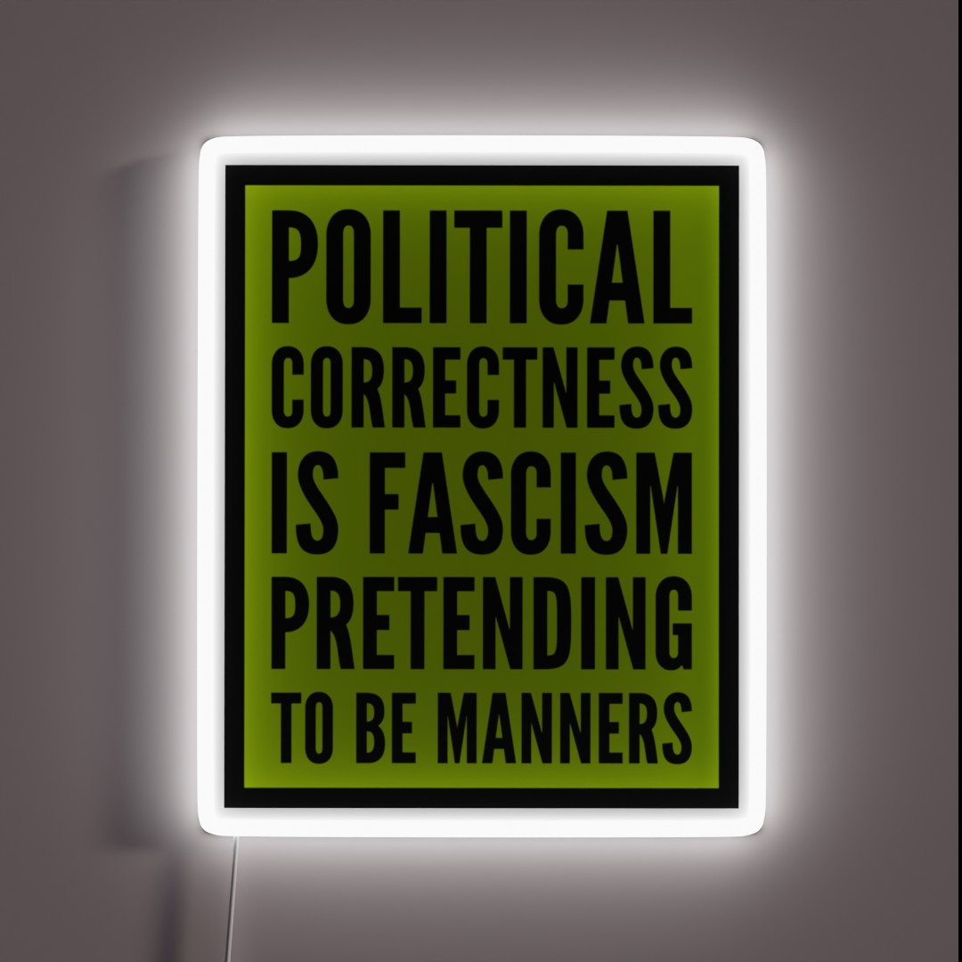 Subvert societal norms with this provocative statement – “Political Correctness is Fascism Pretending to be Manners” – as a bold, eye-catching RGB neon sign.