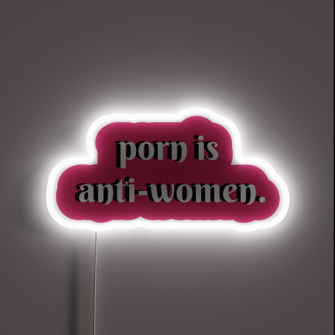 Add a touch of edginess and humor to your space with our “Porn is Anti Women” RGB neon sign. Order now and get ready to spark some conversation!