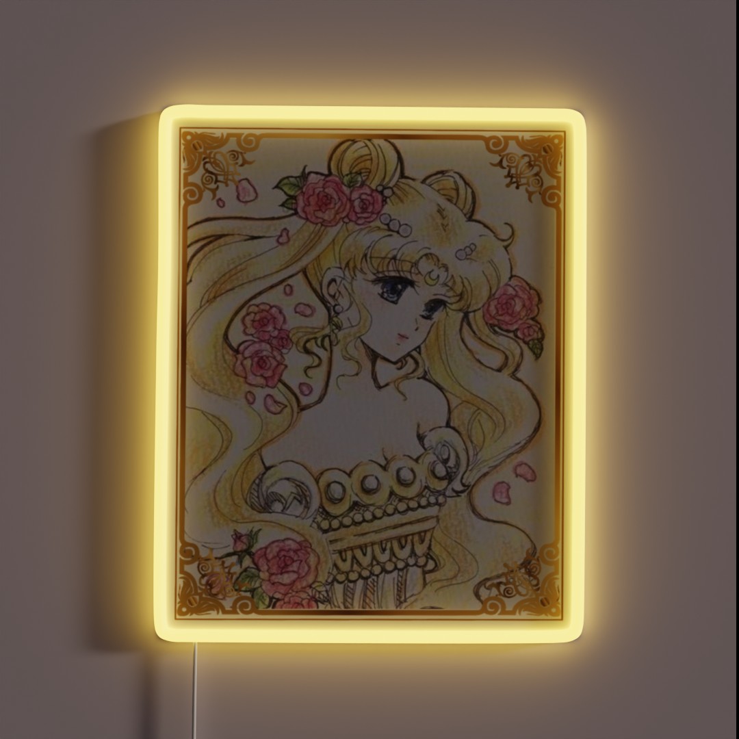 Add a touch of celestial magic to your space with our Princess Serenity RGB neon sign, inspired by the beloved Sailor Moon character, featuring vibrant colors and a radiant glow.