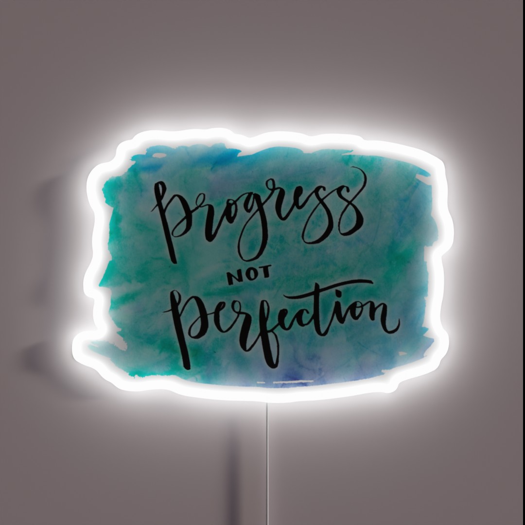Add a touch of modern sophistication to your space with this handcrafted Progress Not Perfection RGB neon sign, featuring customizable color options and a motivational message that celebrates self-improvement over perfectionism.