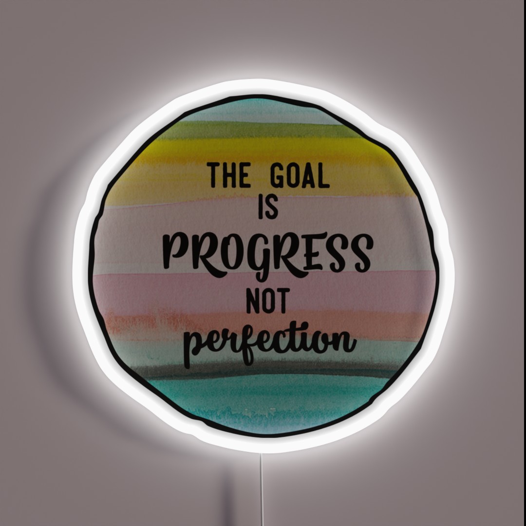 Embracing Imperfection with Style: A vibrant RGB neon sign that celebrates progress and individuality, perfect for modern homes and offices.