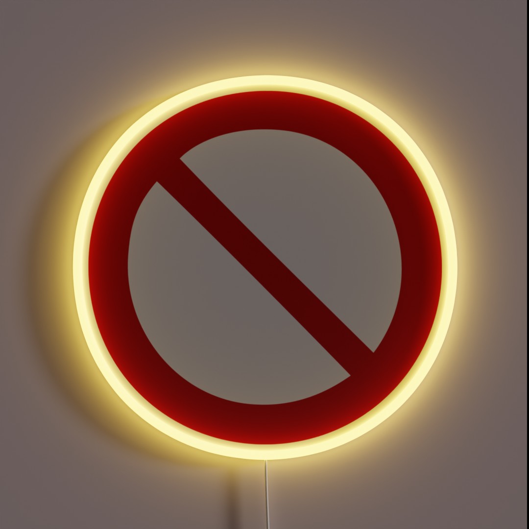 Make a bold statement with this vibrant and eye-catching “Prohibited” sign, illuminated in bright RGB colors that will grab attention from any direction. This unique piece is not just a stylish addition to your space, but also a functional conversation starter.