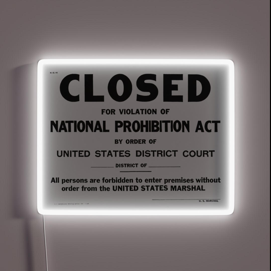 Add a touch of vintage glamour to your home or bar with this authentic prohibition era-inspired RGB neon sign featuring a classic ‘Prohibition’ warning message.
