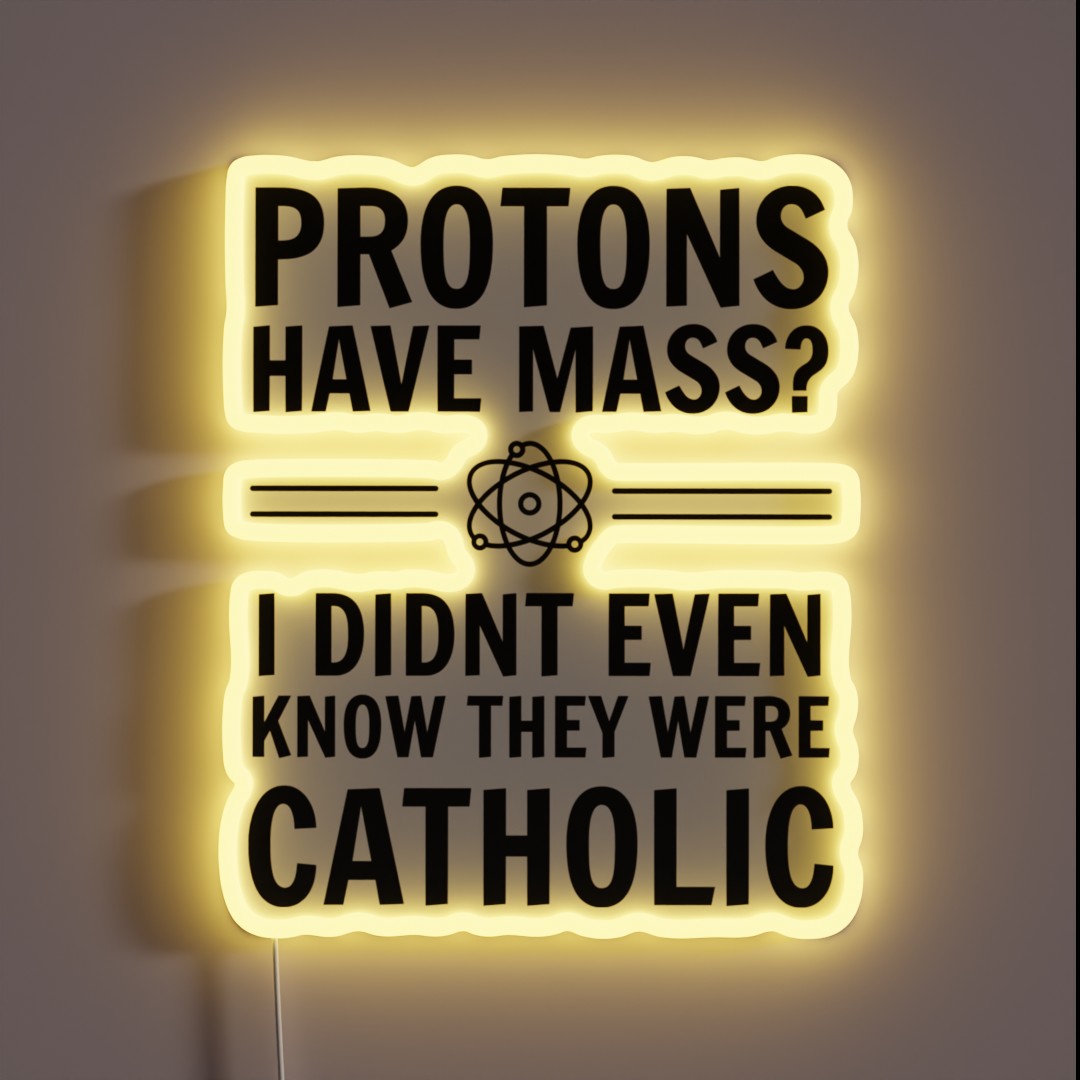 Add a dash of science humor to your space with this unique RGB neon sign: ‘Protons Have Mass I Didn’t Even Know They Were Catholic’ – a quirky gift for anyone who loves physics and bad jokes!