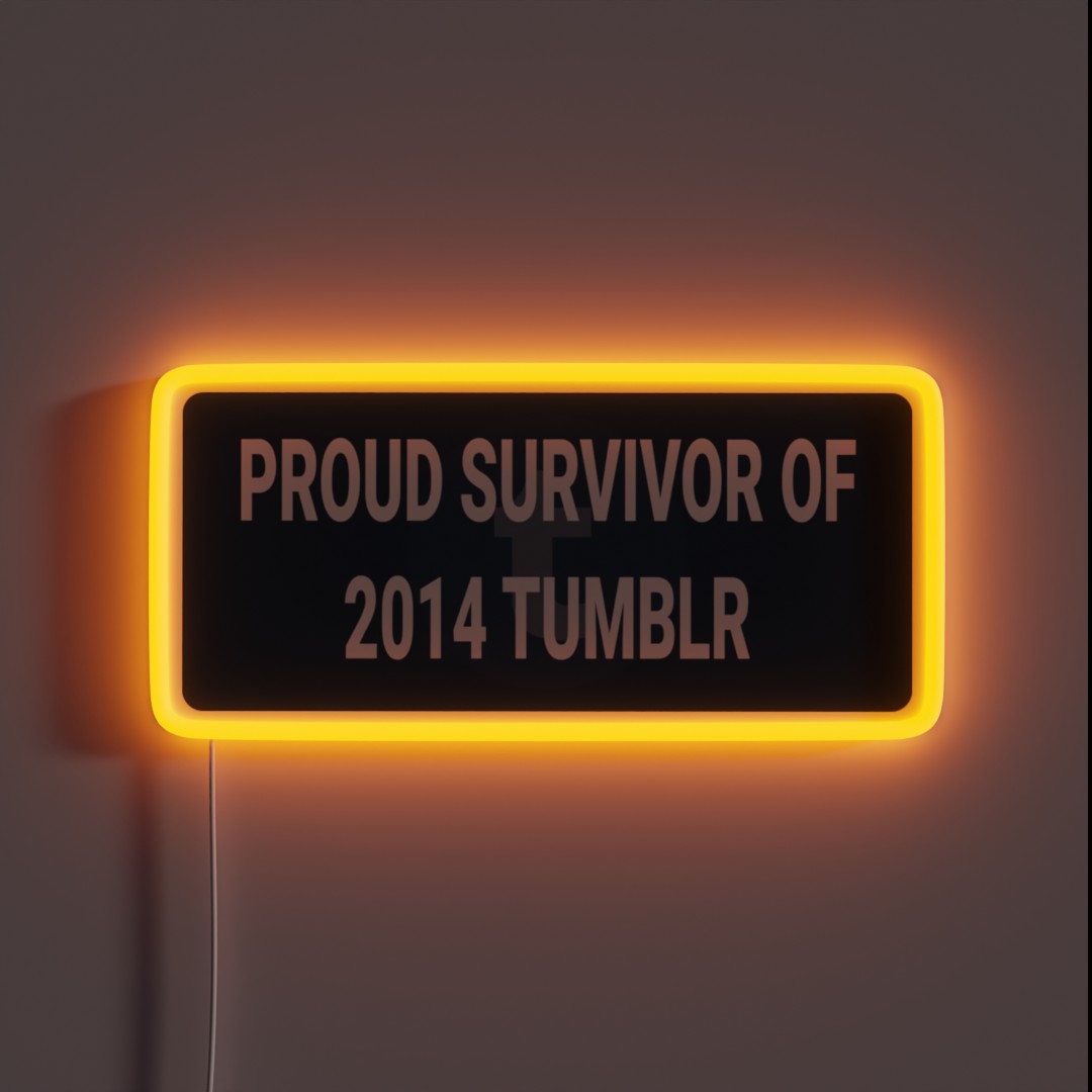 Pay homage to the iconic era of 2010s internet culture with this vibrant and nostalgic neon sign. Inspired by the aesthetic of Tumblr’s heyday, this Proud Survivor of 2014 RGB neon sign is a must-have for anyone who lived through the early days of online communities.