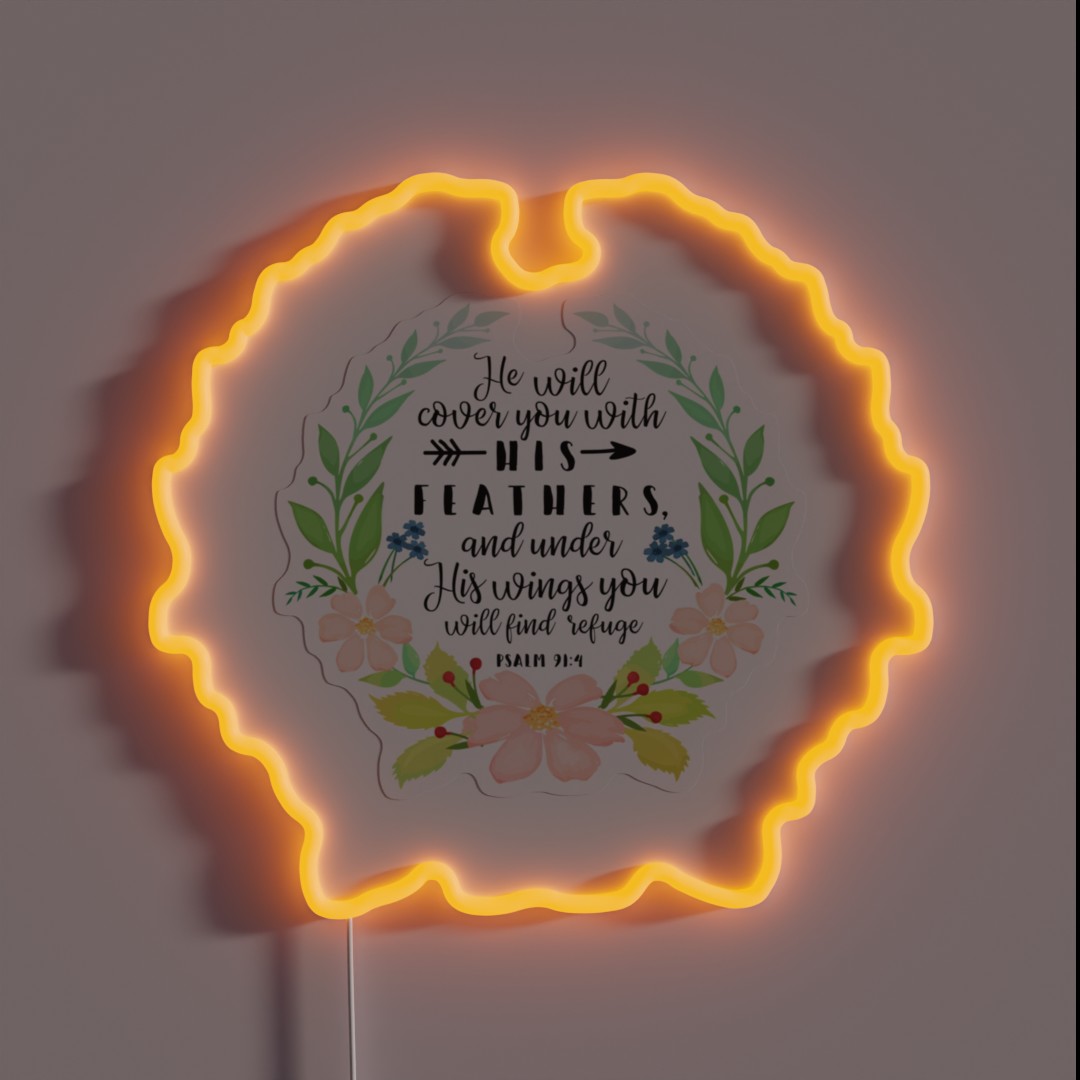**Experience Divine Protection with Psalm 91: He Will Cover You With His Feathers RGB Neon Sign**